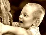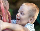 Excited boy hugs his mother