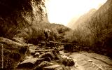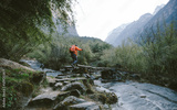 Hiker cross the bridge