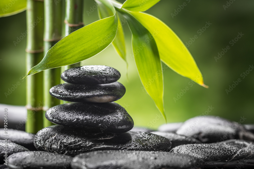 zen basalt stones and bamboo