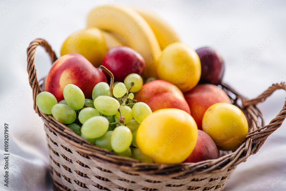 fruit basket on a white background