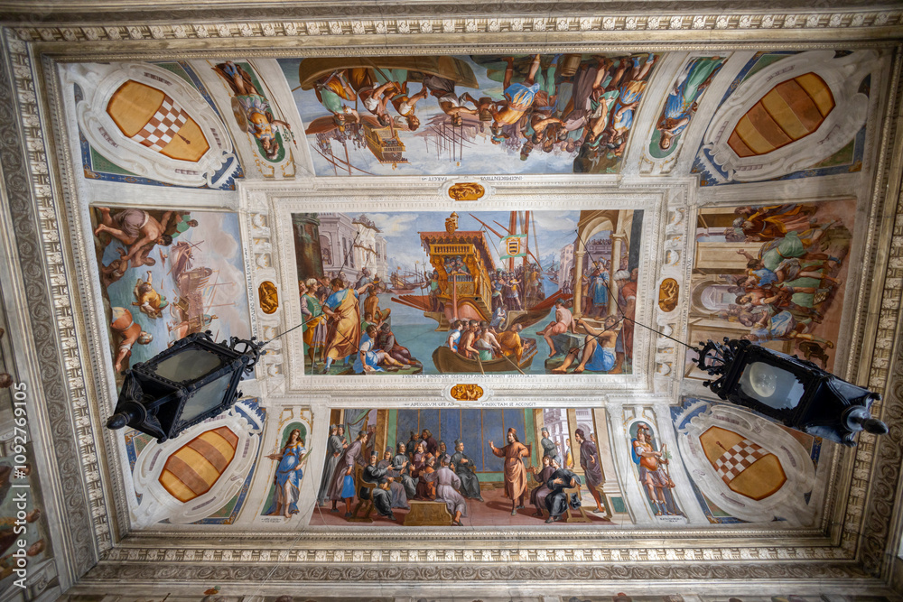 GENOA, ITALY, MAY 18, 2024 - The frescoed ceiling of Villa Spinola San Pietro in Genoa, Italy