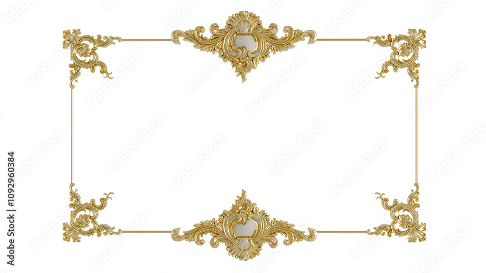 Decorative golden vintage frames, Golden baroque frame on transparent background.
