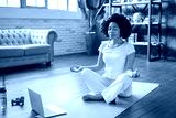 Woman meditating and practicing yoga at home. Training, fitness, workout, meditation, yoga, self-care, relaxation exercises, mindfulness, healthy lifestyle, recreation concept