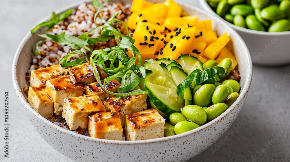 Healthy protein bowl recipe kitchen food photography bright environment top view balanced nutrition concept