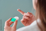 Young woman using soft contact lenses instead of glasses for vision correction