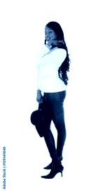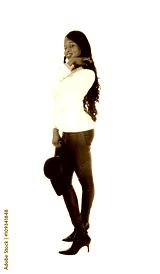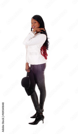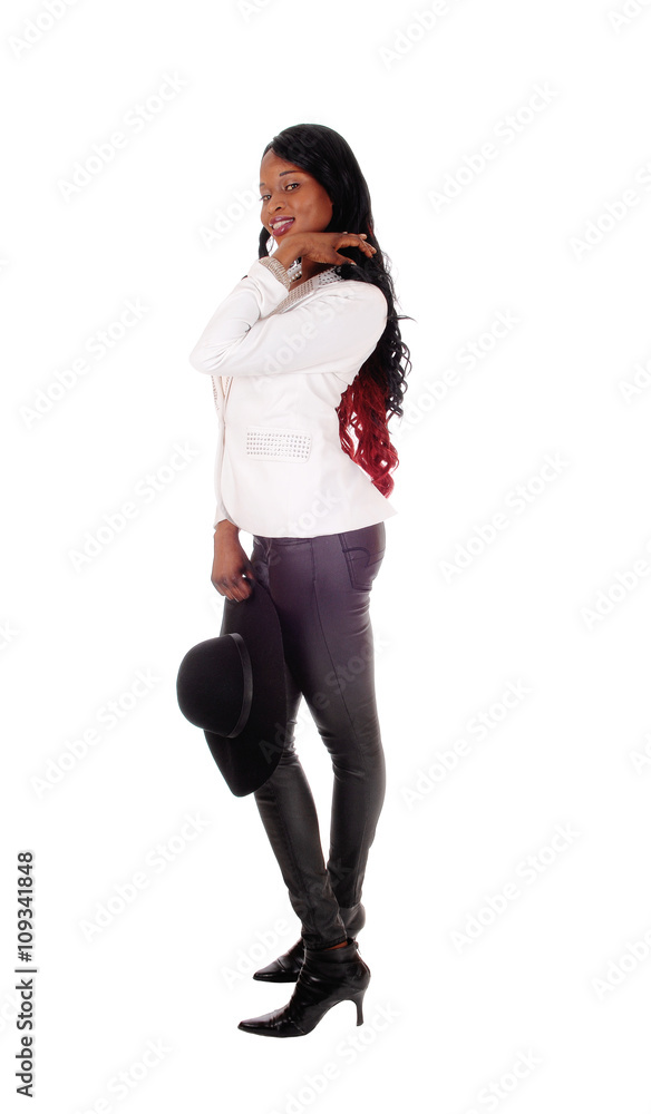 African American woman in leather tights.