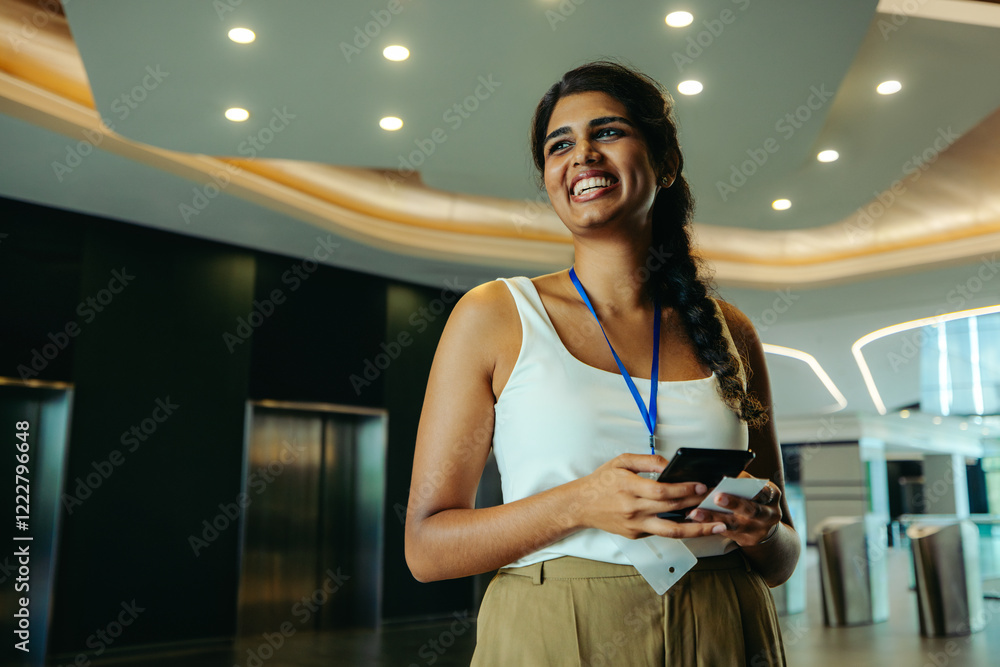 Two individuals engaged in analyzing a piece of modern art at a gallery setting, with one holding an iPad and both wearing professional attire
