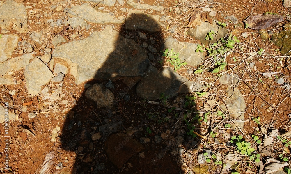 human shadow in sunlight on soil road