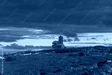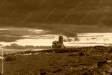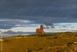 Słońce oświetla budynek dawnego schroniska przy Śnieżnych Kotłach w polskich Karkonoszach tuż przed zachodem słońca