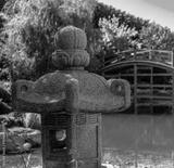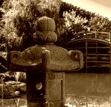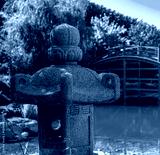 A stone figure in a Japanese garden in close-up.