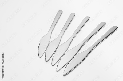 Silverware or flatware set isolated on white background. Concept composition with copy space