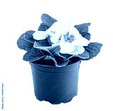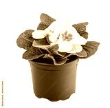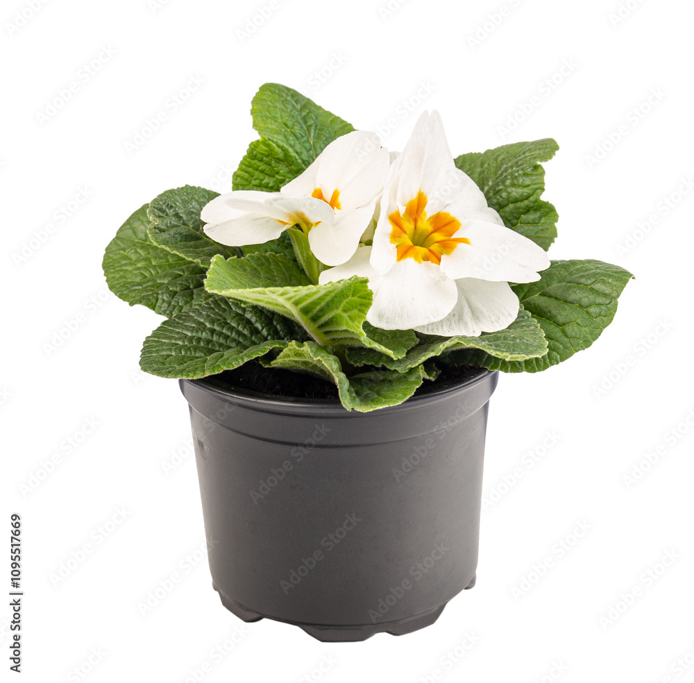 Beautiful white primula with yellow centre