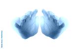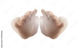 Healing Hands on white background - female hands with palms facing outwards and a white energy orb between isolated on a white background