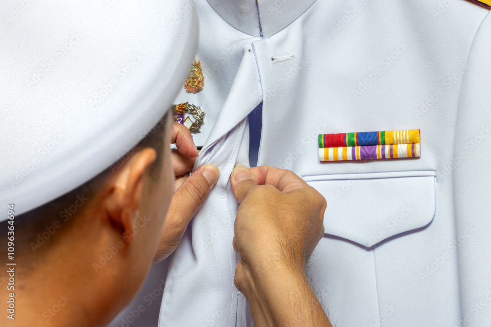 Decoration of the ceremonial uniform with military decorations