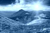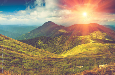 Beautiful panoramic mountain landscape at sunset.