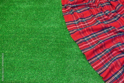 Red Picnic Tartan Empty Blanket On The Fresh Trimmed Grass