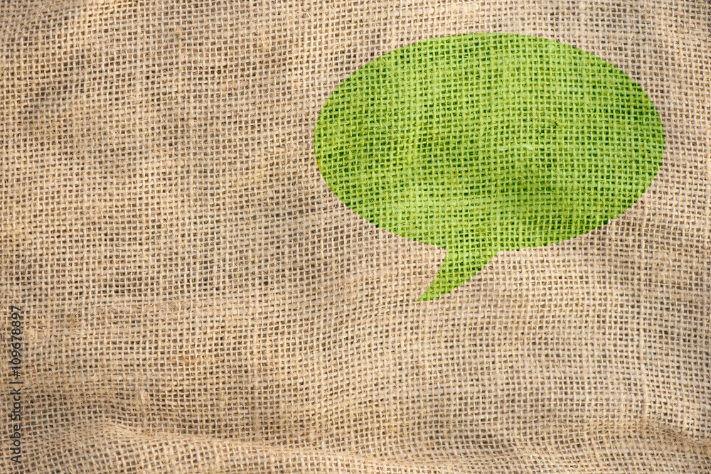 Speech bubble on burlap textile