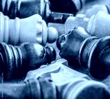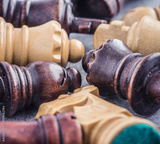Group of chess pieces in close up. Concept of strategy, teamwork and teambuilding.