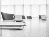 Business meeting Table with Seats Coffee and book Board room Interior