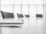 Business meeting Table with Seats Book and Pencil Board room Interior