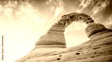 Vintage toned Delicate Arch at sunset, Arches National Park in Utah, USA.