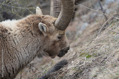 herd of steinbock capricorns grazing in Pontresina, Graubuenden, during summer. Ibex herd.