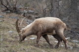 herd of steinbock capricorns grazing in Pontresina, Graubuenden, during summer. Ibex herd.
