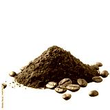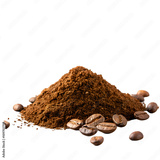 coffee beans with ground powder explosion isolated on white background, dynamic studio shot, clipping path, transparent PNG download, perfect for marketing, product photography, and retail trade