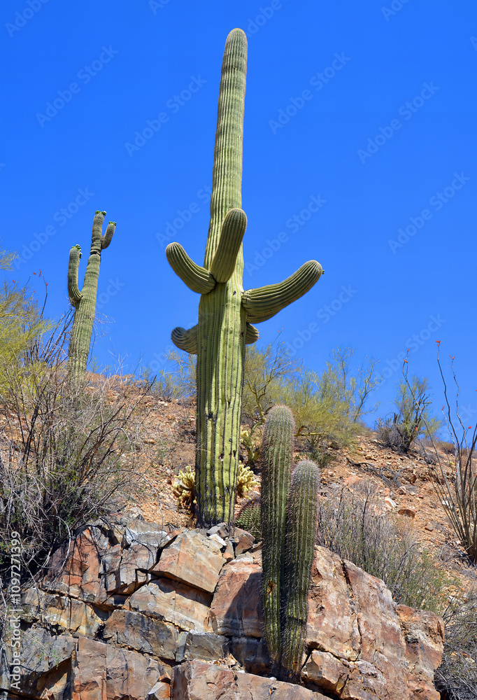 Saguaro cacti in Tonto National Monument is a National Monument in the Superstition Mountains, in Gila County of central Arizona. The area lies on the northeastern edge of the Sonoran Desert ecoregion