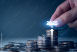 2025 new year business goal challenge concept, Business man planning increase percentage future growth 2025, Business corporate plan strategy, investment in new year