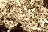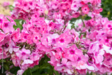 Colorful Floribunda Petunia blossoms in flowerpot, close up. Madness Rose Star Petunia hybrida popular flowering plant in the family Solanaceae, Petunioideae. Annual, multicolored garden flowers.