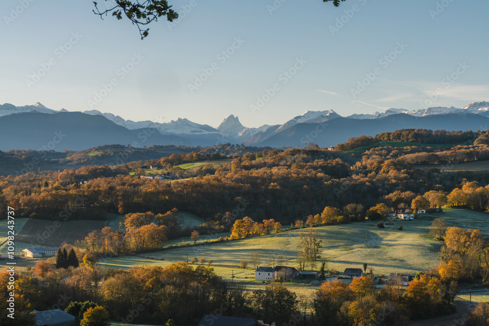 Gorgeous french campain in Jurançon, with the Pyrenees and the Pic du Midi d'Ossau / France