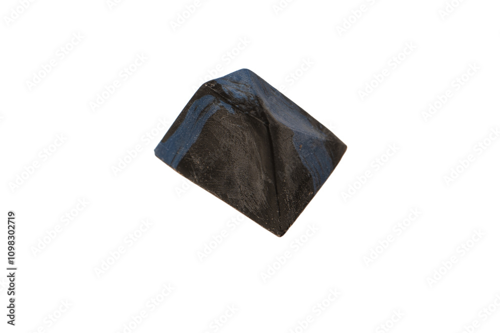 Chocolate candies in the form of precious stones, with marble texture, isolated on a white background.