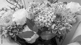 Bouquet of flowers with pink roses, chrysanthemum and freesia flower in a vase isolated on a white background.