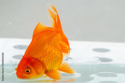 Oranda goldfish in aquarium fish tank close up