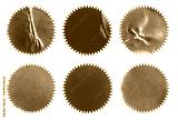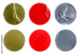 A set of red, gold and silver common seal sticker label isolated on white background.