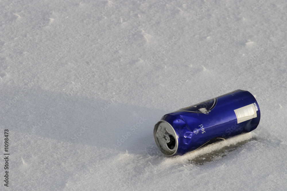 beer can on snowy ground.