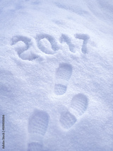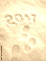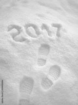 2017 New Year greeting card, 2017 new year, foot step prints in snow, happy new year 2017 concept