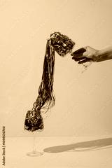 Hand Pouring Wine into Glass with Cascading Streamers. Celebration and Festivity. New Year, Christmas Event Party Concept