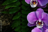 Purple orchid flower outdoor in a garden at daytime in Japan with space for text.