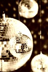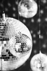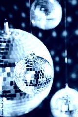 Mirrored disco balls with light spots over background