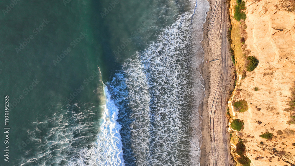 Aerial drone photo of Swami's beach a true surfer's paradise in Encinitas California, United States of America