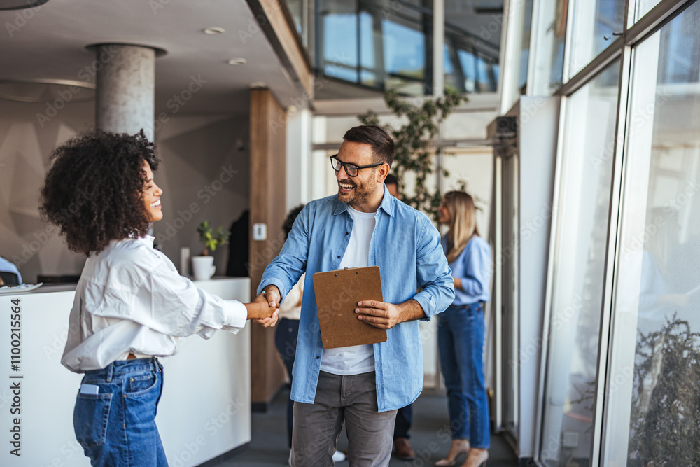 Friendly Business Meeting With Handshake in Modern Office