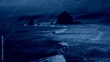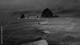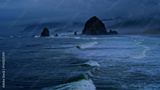 Rushing ocean waves on beautiful Oregon coast with rain storm
