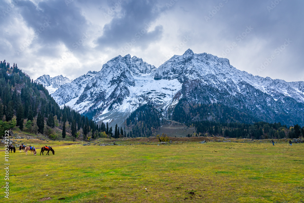 Serene Landscape of Sindh river valley near Sonamarg village in Ganderbal district of Jammu and Kashmir, India. It is a popular tourist destination for trekking and Amarnath holy pilgrimage.