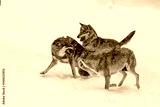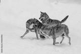 pack, Eurasian wolf (Canis lupus lupus) they fight during snowfall