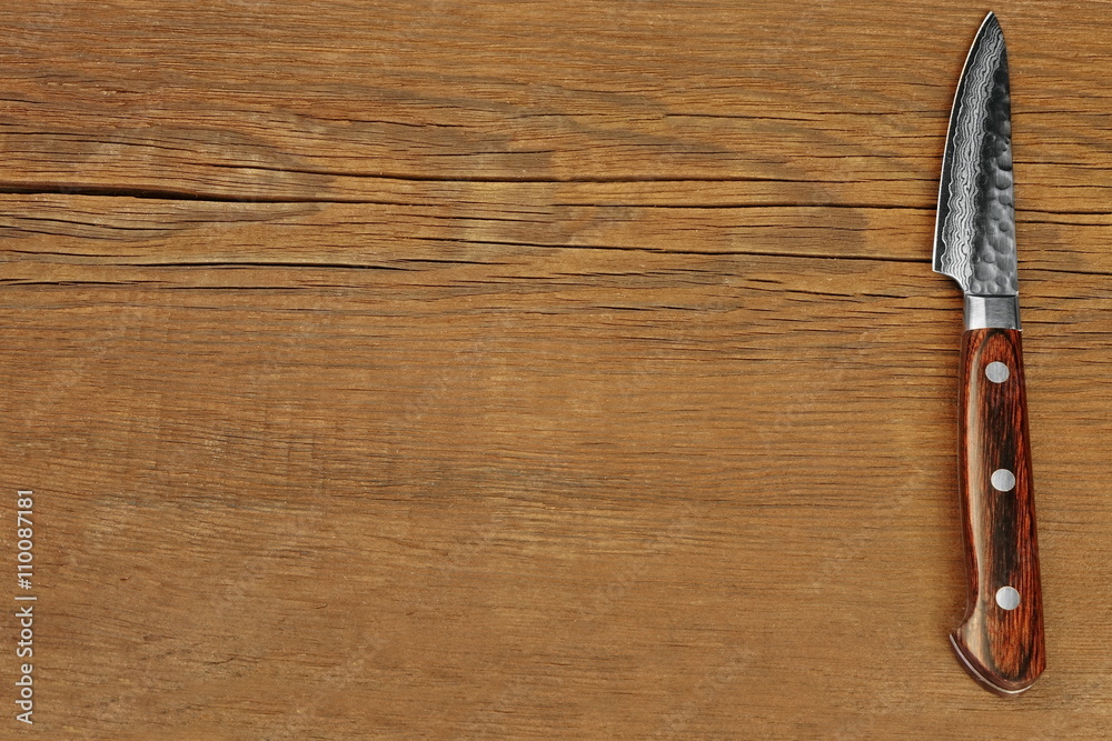 Japanese Professional Kitchen Knife On The Wood Cutting Board