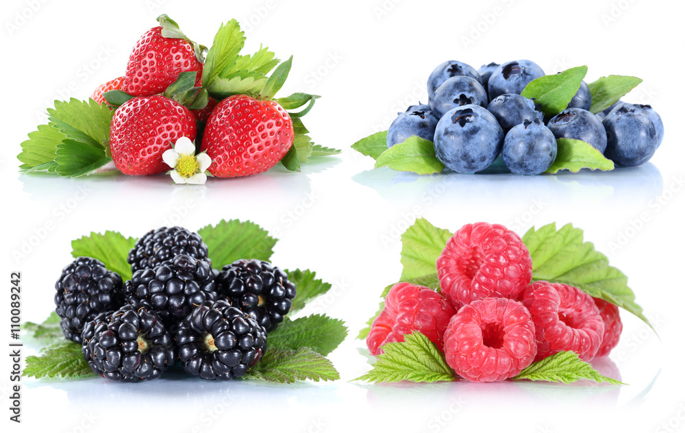 Beeren Erdbeeren Sammlung Blaubeeren Himbeeren Früchte Freistel