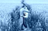 The family has a rest on the rape field.