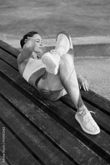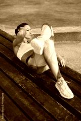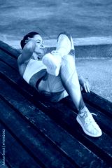 Fitness woman doing crunches exercise workout. Female fit athlete training abdominal midsection for improve core strength.